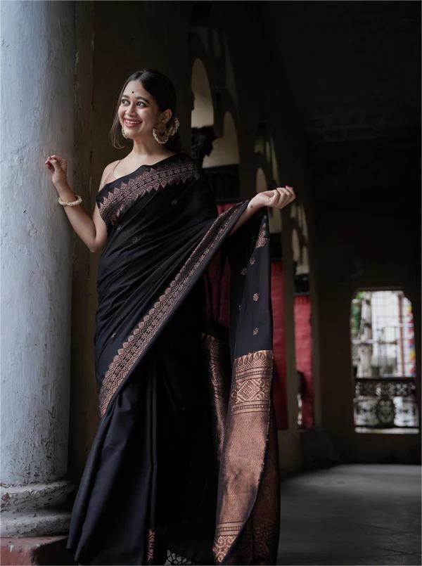 Name : | MF 1950 BLACK BANARASI SOFT LICHI SILK SAREE |