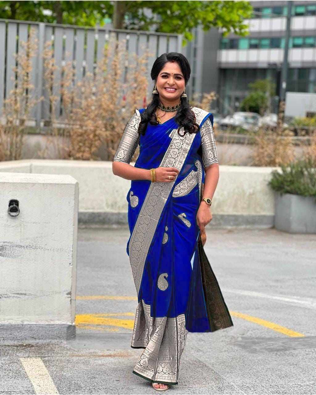 | Name : | MF 2030 NEW BEAUTIFUL JACQUARD WORK ON ROYAL BLUE SAREE |