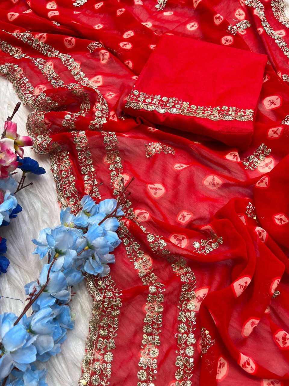 Saree Fabric: Georgette with Mill-Printed Saree Design