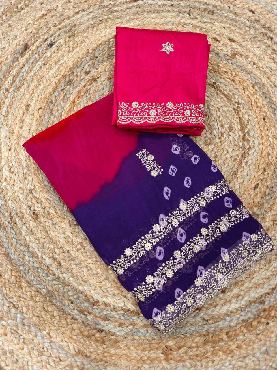 A graceful combination of lightweight georgette and detailed embroidery makes this saree perfect for festive wear, parties, and special occasions. Pair it with statement jewellery for a complete stunning look.