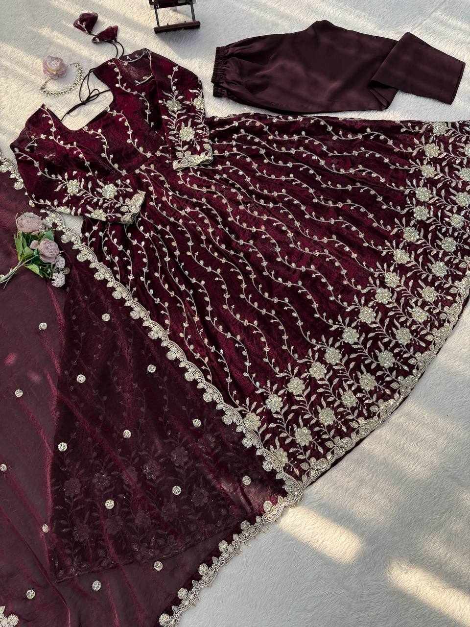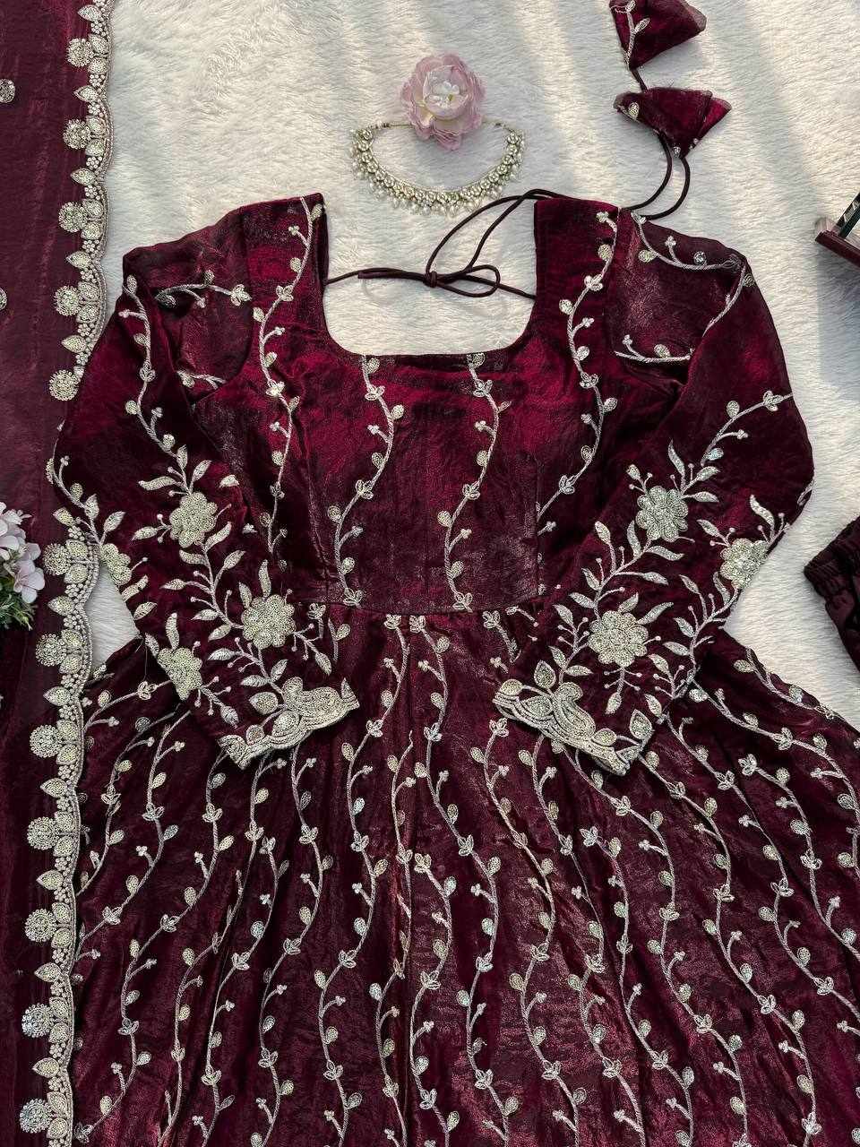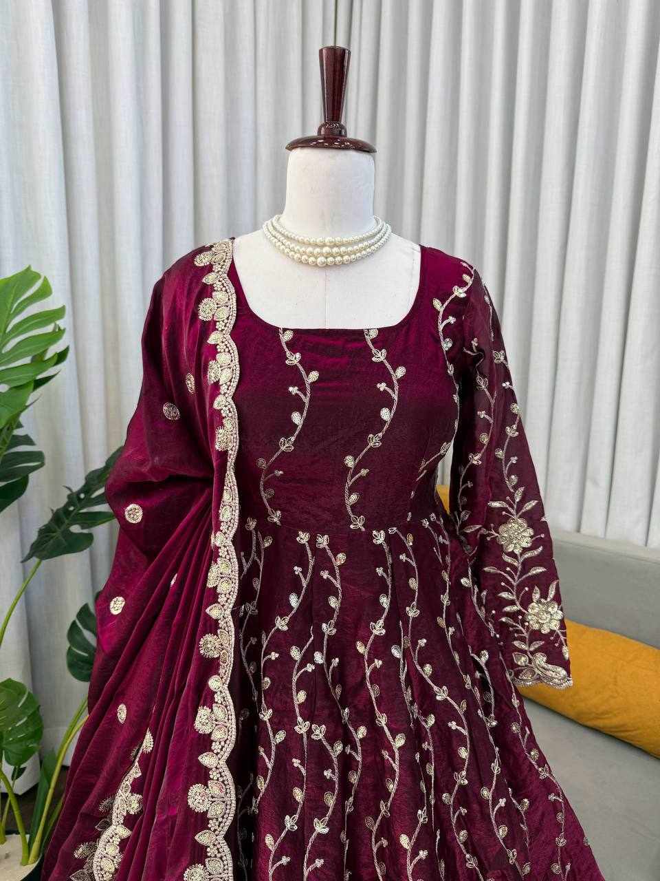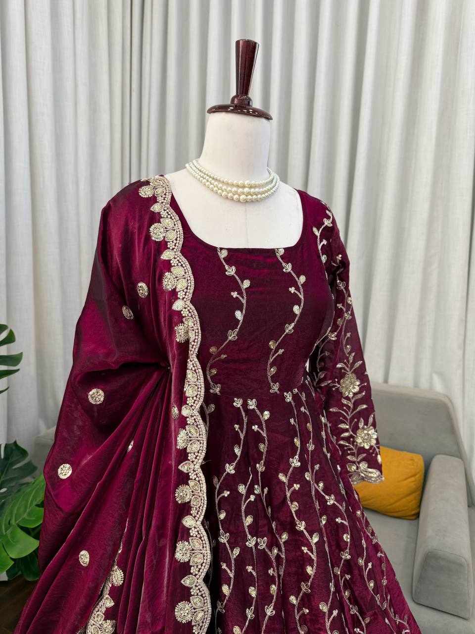 | Name : | RTC 5953 New Beautifull Party Wear Maroon Gown |