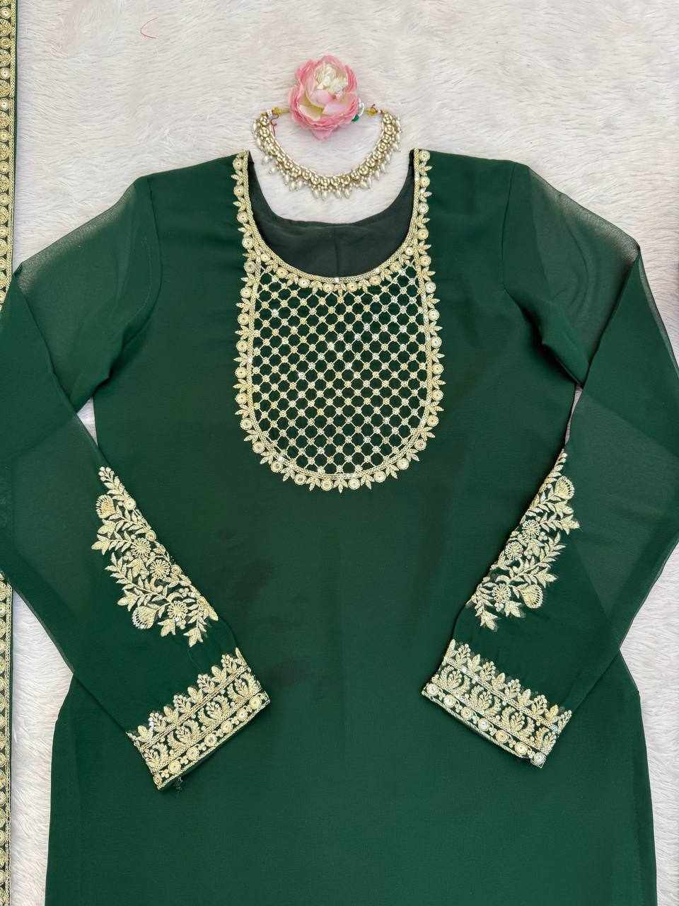 JKWH 997 Pure Fine Cotton Febric Embroidery Work A-line Kurti Set With Pocket