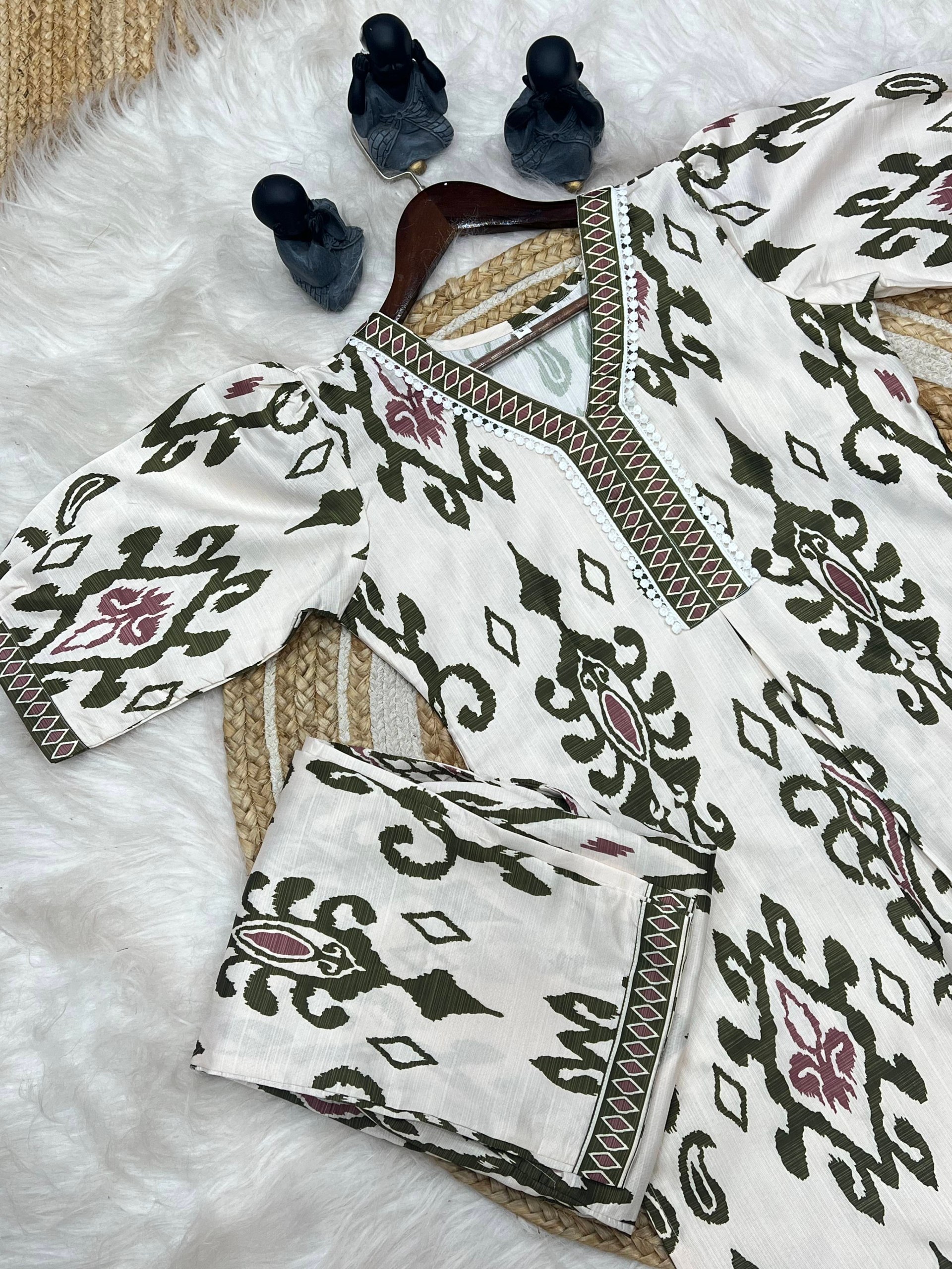 JKWH 998 Pure Fine Cotton Febric Embroidery Work A-line Kurti Set With Pocket